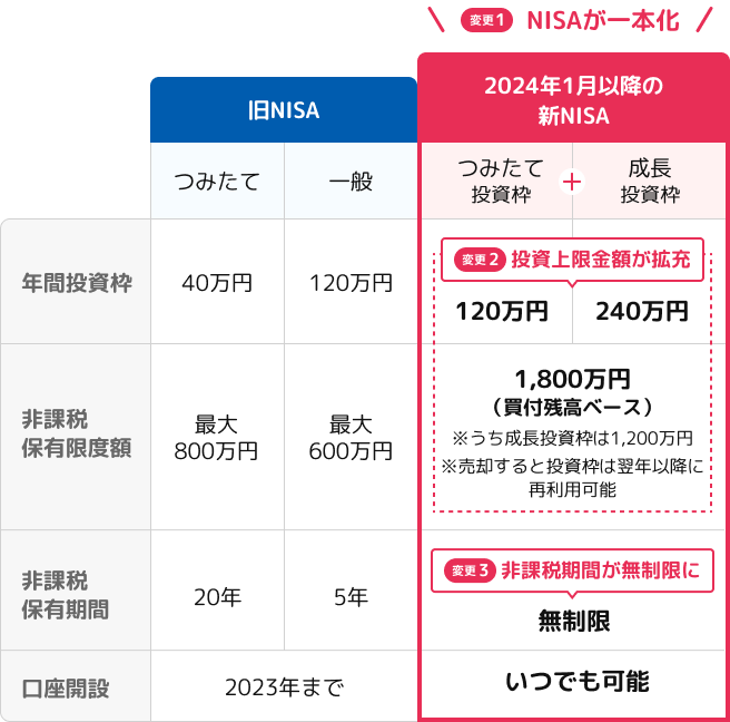 旧NISA:つみたてor一般 → 新NISA:つみたて投資枠&成長投資枠
