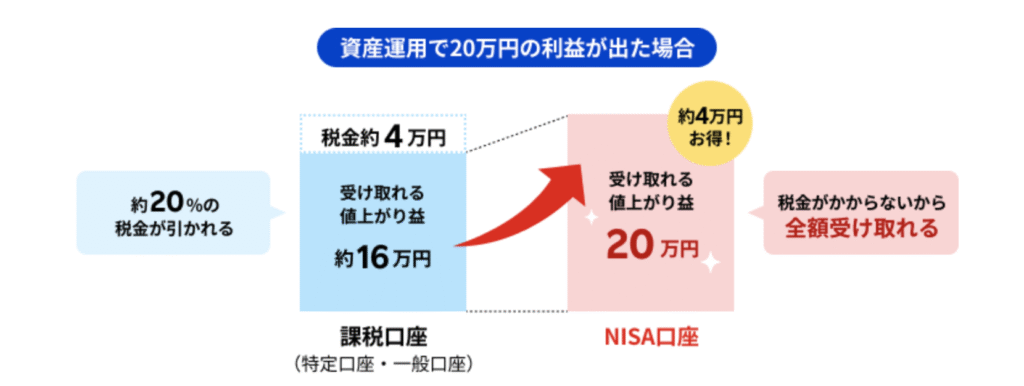 しかし、NISA口座で投資していれば、運用して得られた利益は全て(この場合は20万円)受け取ることができます