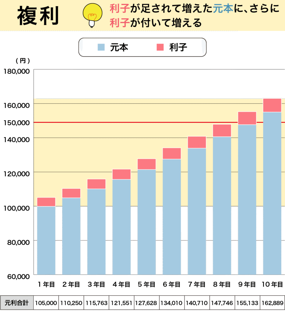運用で得た利益をさらに再投資することで、利益が利益を生み、